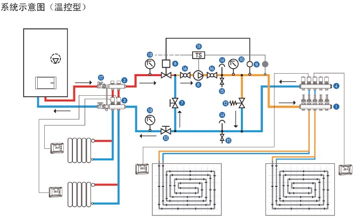 3.高溫(散熱器)水系統回水集水器(電熱閥/手動閥底座)