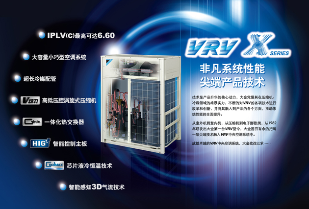 大金變頻中央空調——每套由一台室外機(5HP~48HP)匹配若幹台(最多可達30台)室内機(0.8HP~10HP)組成(chéng)——是日本大金工業株式會(huì)社研制開(kāi)發(fā)的,目前世界上最先進(jìn),最新型、的高智能(néng)化的氟利昂直接蒸發(fā)式中央空調。
