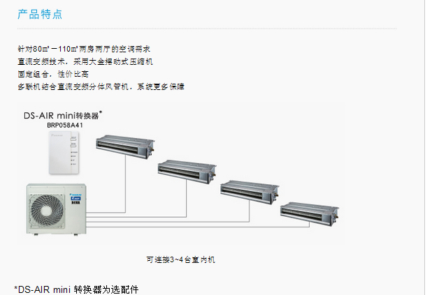 | 室外機展示 長(cháng)冷媒配管,使安裝更靈活,機身小巧緊湊,靈活對(duì)應狹小空間 | |